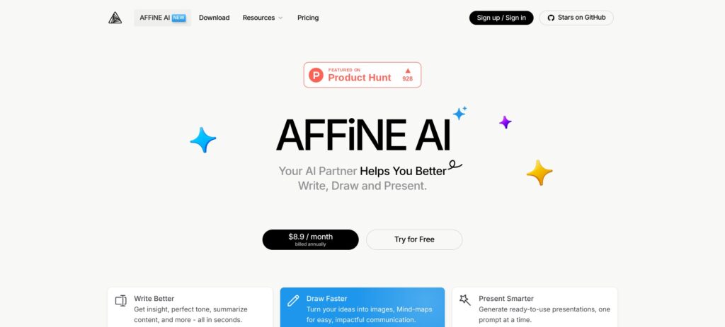 AFFiNE AI is an advanced platform that uses AI to enable users to seamlessly write, draw, and present. By combining documents, whiteboards, and databases – it offers a comprehensive solution for managing diverse tasks within a single environment. This integration is meant to streamline workflows and fosters creativity by eliminating the need to switch between multiple applications.