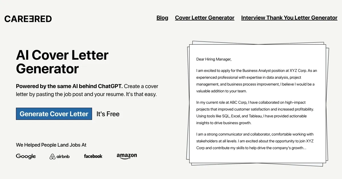 I had a chance to try out Careered AI, and it feels like a caffeine shot for your job application grind. You’re staring at a job posting, your resume’s ready, but the cover letter? Ugh, the worst. Careered AI swoops in, takes your resume and that job description, and spits out a tailored cover letter faster than you can brew a pot of coffee. I tried it with a Business Analyst posting, pasted my resume, and in 52 seconds — yes, I timed it — a crisp, professional letter was ready. It’s powered by ChatGPT’s AI, so it’s smart enough to weave in your skills, like my SQL experience, without sounding like a soulless bot.