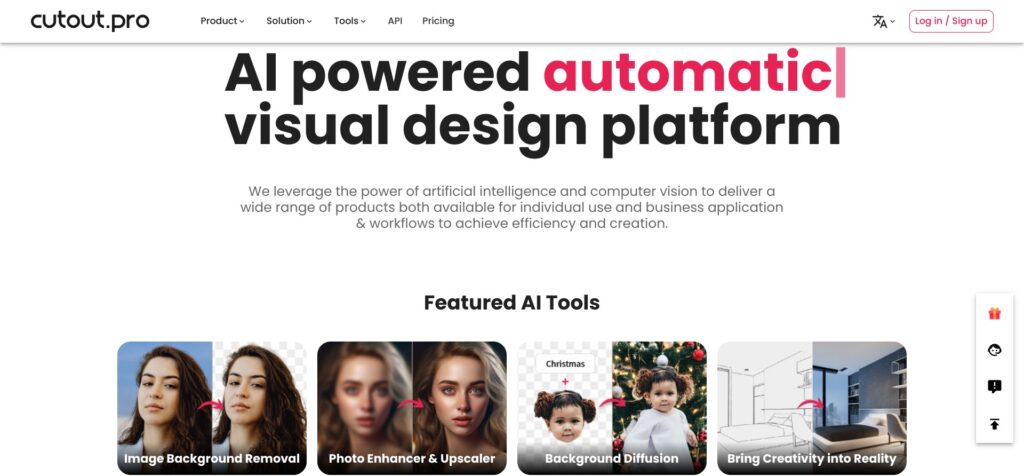 Cutout.Pro is an AI-powered visual design platform offering a range of products and services that are meant to improve efficiency and stimulate creativity. The main focus of this platform, however, is to facilitate image and video design using state-of-the-art AI technologies.