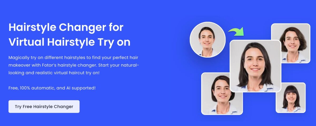 Fotor AI Hairstyle Changer is an online tool powered by artificial intelligence that lets you upload a selfie and virtually try on different hairstyles, colors, and even beards in seconds, helping you preview looks before a real salon visit. It detects your face shape for personalized suggestions and integrates with photo editing features.
