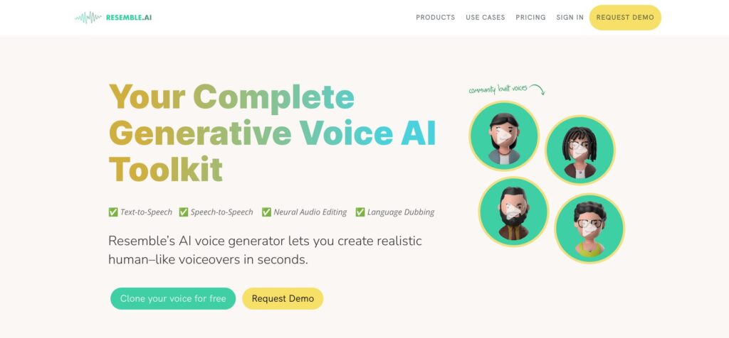 It offers text-to-speech, speech-to-speech, neural audio editing, language dubbing, emotions, real-time voice cloning, localizing, and Resemble Fill capabilities. Resemble also provides an API for developers to integrate these capabilities into their apps.