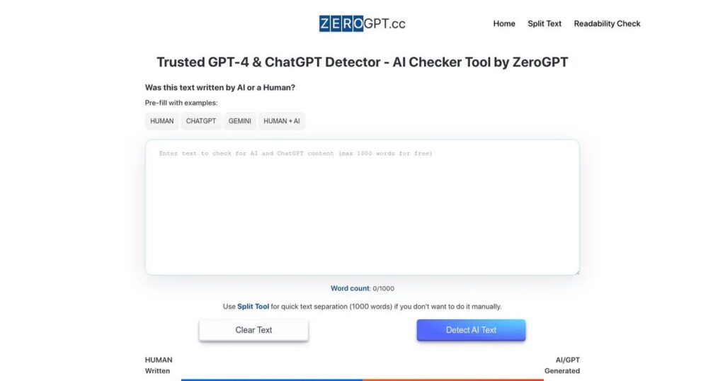 As a user of ZeroGPT, you simply need to copy and paste the text into the tool’s interface and initiate the detection process. The tool then analyzes the text and provides instant feedback on whether it believes the content is AI-generated or human-written, along with detailed insights and suggestions for improvement if necessary.